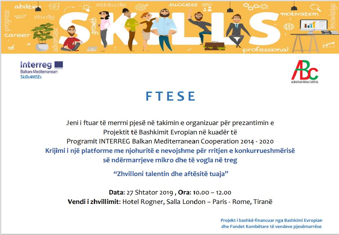 Fondacioni Albanian Besa Capital është partner në implementimin e projektit "Krijimi i një platforme me njohuritë e nevojshme për rritjen e konkurrueshmërisë së ndërmarrjeve mikro dhe të vogla në treg" me akronimin Skills4MSE, në kuadër të “Programit të Bashkëpunimit Ballkanik - Mesdhetar 2014 - 2020”.